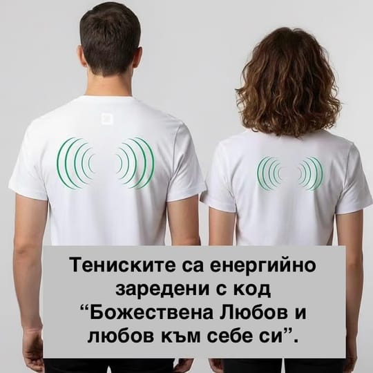 Тениските са заредени с програма за Божиствена любов и любов към себе си, под формата на енергийно заредена, специално структурирана карта в дискретно вътрешно джобче, активираща твоя пълен потенциал без странични ефекти.